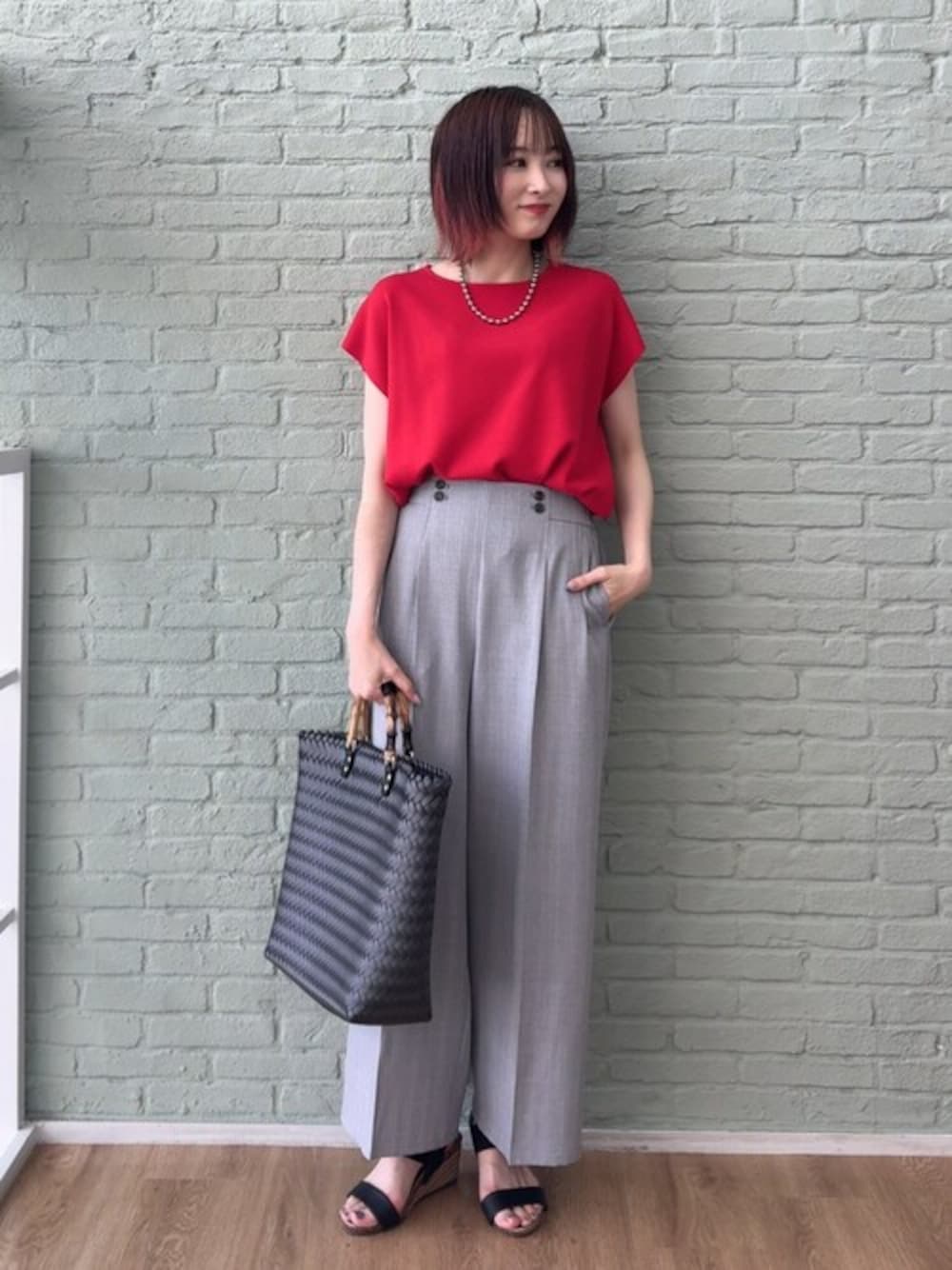 【スタイリングポイント】 目を惹く赤のニットには柔らかく大人見えするグレーが好相性。 黒の小物ですっきりとまとめました。 ※アクセサリーはスタッフ私物です 【Instagram】 my account▶︎ @chi__nk Insta LIVE▶︎ @shoolarue_official 毎週木曜20時〜出演中 インスタも是非チェックお願いします✨