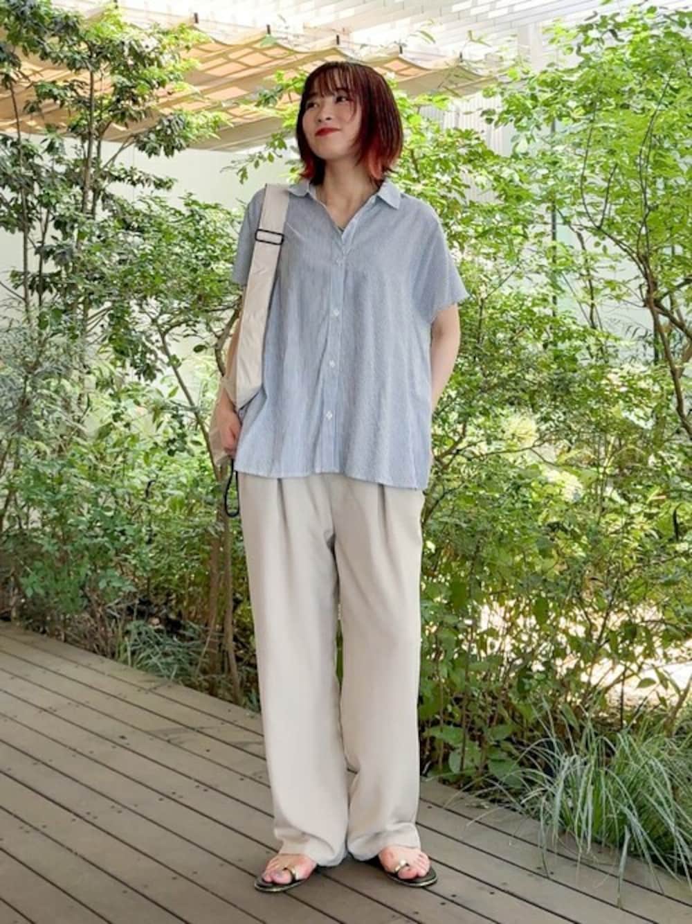 【スタイリングポイント】 涼しげなブルーのストライプシャツに柔らかいカラーのボトムとバッグを合わせました。 シャツは後ろはヒップが隠れる長さですが前後差があるデザインで前は長すぎないのでインしなくてもバランスよく着られました。 【Instagram】 my account▶︎ @chi__nk Insta LIVE▶︎ @shoolarue_official 毎週木曜20時〜出演中 インスタも是非チェックお願いします✨
