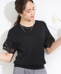 chika(SHOO・LA・RUE)のニット/セーター「【S-LL/ひんやり/UV/】大人上品な お袖レースニット」を使ったコーディネート