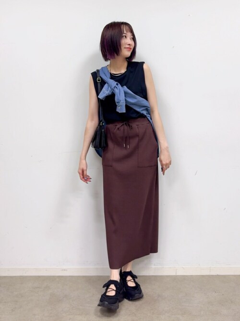 【スタイリングポイント】 少し秋を意識したブラウンとブラックのカラー使いにデニムシャツをたすき掛けでプラス。 小物はブラックで揃えてすっきりまとめました。 【Instagram】 my account▶︎ @chi__nk Insta LIVE▶︎ @shoolarue_official 毎週木曜20時〜出演中 インスタも是非チェックお願いします✨