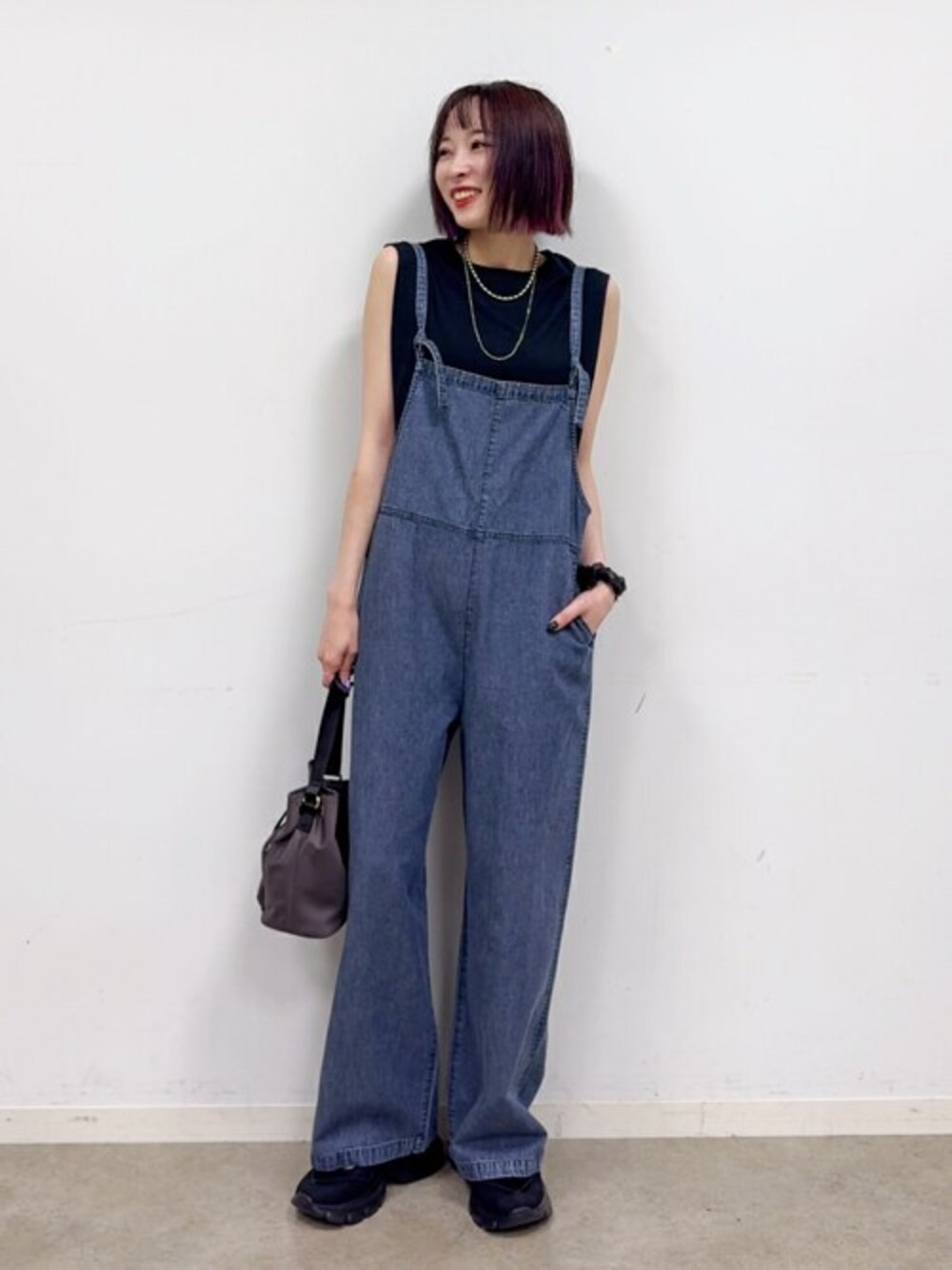 【スタイリングポイント】 まだ暑い日にのサロペットのインナーには涼しい接触冷感のノースリーブトップスがちょうどいい! シンプルな装いにはアクセサリーをつけてこなれ感をプラスすると◎ 【Instagram】 my account▶︎ @chi__nk Insta LIVE▶︎ @shoolarue_official 毎週木曜20時〜出演中 インスタも是非チェックお願いします✨