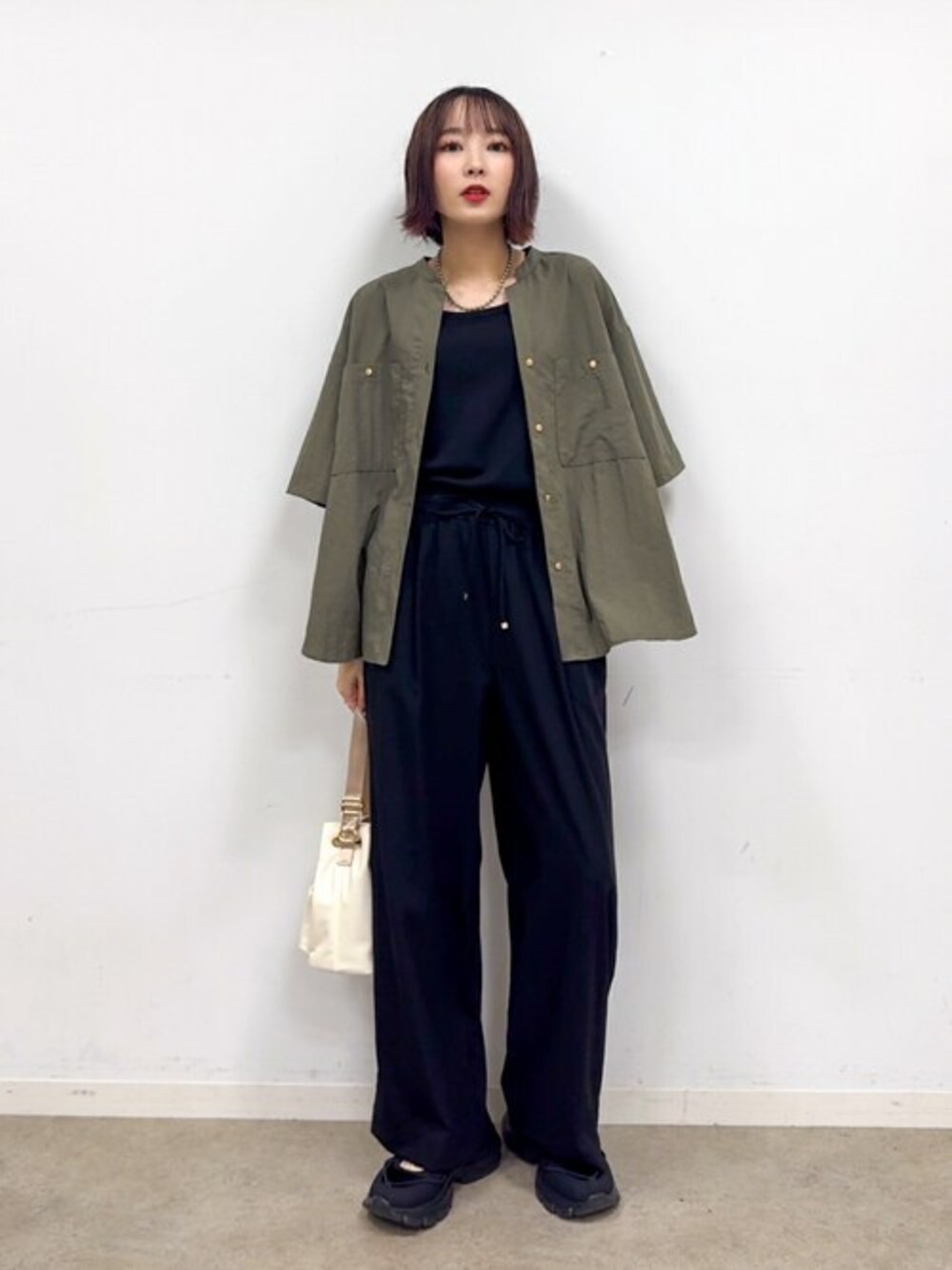 【スタイリングポイント】 上下ブラックにカーキのシャツを羽織ったカジュアルでかっこいい着こなし。 ※インナーは参考商品です 【Instagram】 my account▶︎ @chi__nk Insta LIVE▶︎ ワールドオンラインストア内 LIVE SHOPPING 毎週木曜20時~出演中 是非チェックお願いします✨