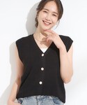 chika(SHOO・LA・RUE)のベスト「【S-LL】ゴールドボタンが上品 大人のニットベスト」を使ったコーディネート