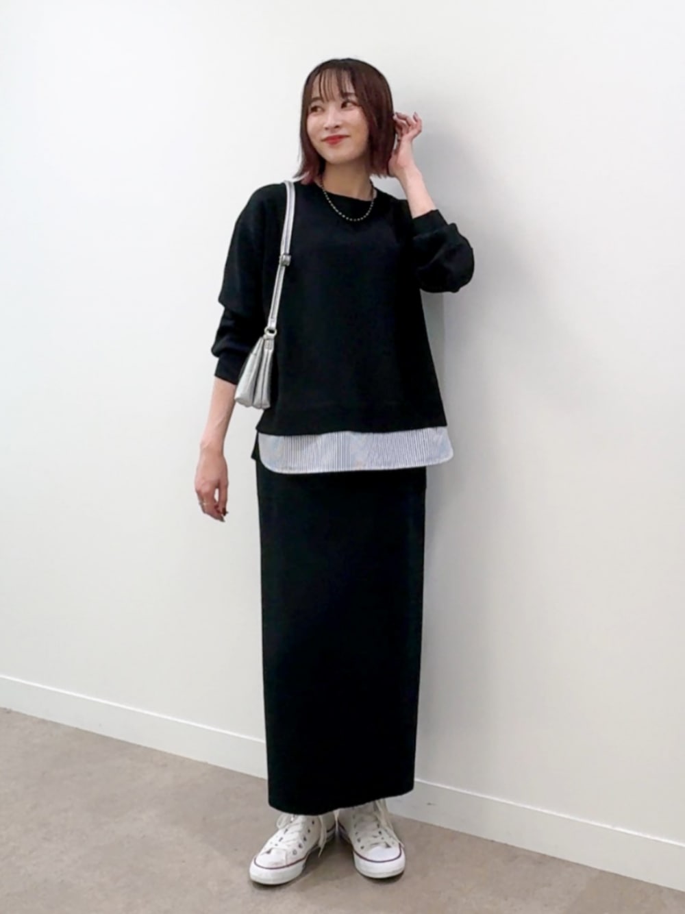 【スタイリングポイント】 インせず着るのがおすすめなレイヤード風ニットは同色のスカートと合わせて、ストライプの裾のデザインが際立つ着こなしに。 黒でまとめることでインしないコーデが苦手な骨格ウェーブでもすっきりとした印象で着こなせます。 ※シューズはスタッフ私物です 【Instagram】 my account▶︎ @chi__nk Insta LIVE▶︎ ワールドオンラインストア内 LIVE SHOPPING 毎週木曜20時~出演中 是非チェックお願いします✨