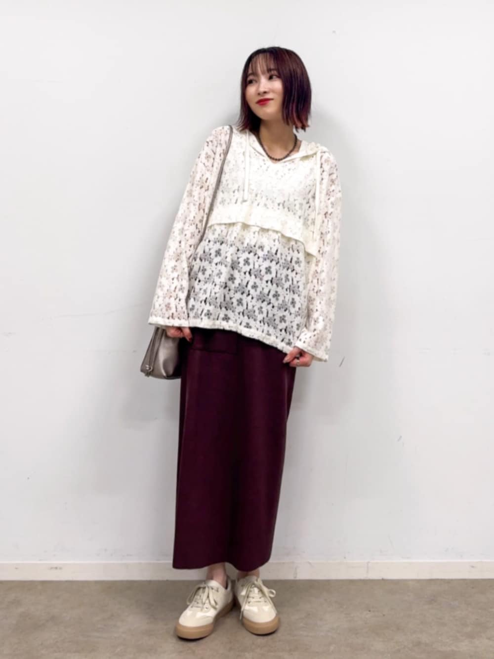 【スタイリングポイント】 白のレーストップスにトレンドカラーのブラウンのスカートを合わせました。 ゆったりめのシルエットのトップスなので、すっきり見えするナロースカートと合わせたのがポイントです。 【Instagram】 my account▶︎ @chi__nk Insta LIVE▶︎ ワールドオンラインストア内 LIVE SHOPPING 毎週木曜20時~出演中 是非チェックお願いします✨