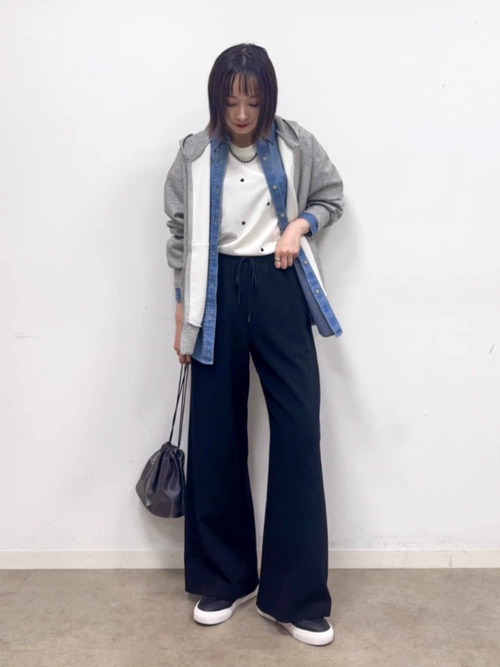【スタイリングポイント】 シンプルになりがちなパーカーの着こなしのおすすめの一つはデニムシャツを中に入れたレイヤードスタイル。 刺繍がさりげないポイントのロンTをインナーにしてこなれ見えカジュアルスタイルに。 【Instagram】 my account▶︎ @chi__nk Insta LIVE▶︎ ワールドオンラインストア内 LIVE SHOPPING 毎週木曜20時~出演中 是非チェックお願いします✨