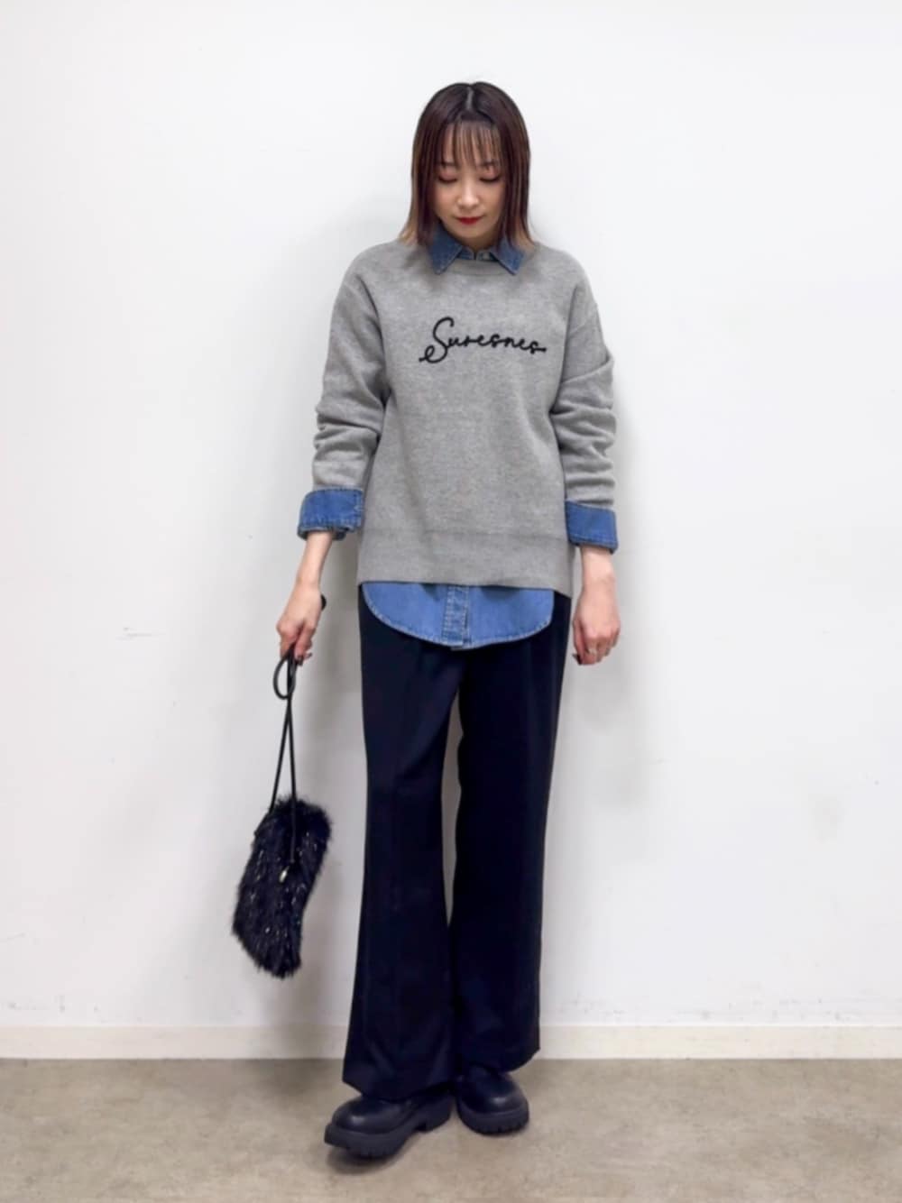 【スタイリングポイント】 グレーのニットにデニムシャツをレイヤードしたスタイル。 着丈が長すぎないニットも、ヒップが隠れるシャツを中に重ねることでさりげなく腰回りをバーできます。 【Instagram】 my account▶︎ @chi__nk Insta LIVE▶︎ ワールドオンラインストア内 LIVE SHOPPING 毎週木曜20時~出演中 是非チェックお願いします✨