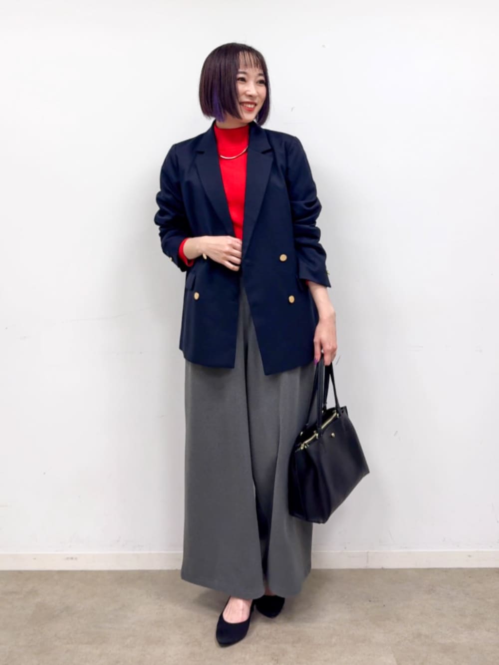 【スタイリングポイント】 赤のニットを効かせたオフィスカジュアルスタイルです。 小物は黒ですっきり締めてきちんと見え。 ※パンプスは参考商品です。 【Instagram】 my account▶︎ @chi__nk Insta LIVE▶︎ ワールドオンラインストア内 LIVE SHOPPING 毎週木曜20時~出演中 是非チェックお願いします✨