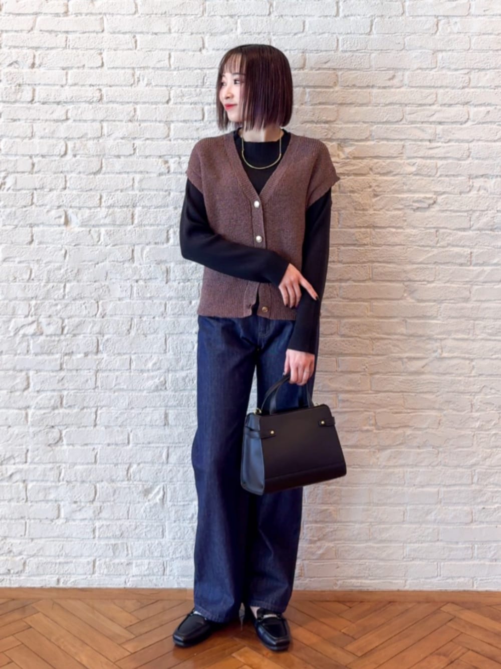 【スタイリングポイント】 大人も穿きやすいインディゴカラーのストレートデニムをベストとレイヤードしたきれいめカジュアルスタイルです。 ベストのボタンはひとつ開けることで抜け感をプラスできます。 ※バッグは今後発売予定です 【Instagram】 my account▶︎ @chi__nk Insta LIVE▶︎ ワールドオンラインストア内 LIVE SHOPPING 毎週木曜20時~出演中 是非チェックお願いします✨