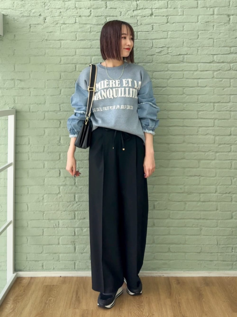 【スタイリングポイント】 ブルーのデニム素材のニットをすっきりとブラックと合わせました。 【Instagram】 my account▶︎ @chi__nk Insta LIVE▶︎ ワールドオンラインストア内 LIVE SHOPPING 毎週木曜20時~出演中 是非チェックお願いします✨
