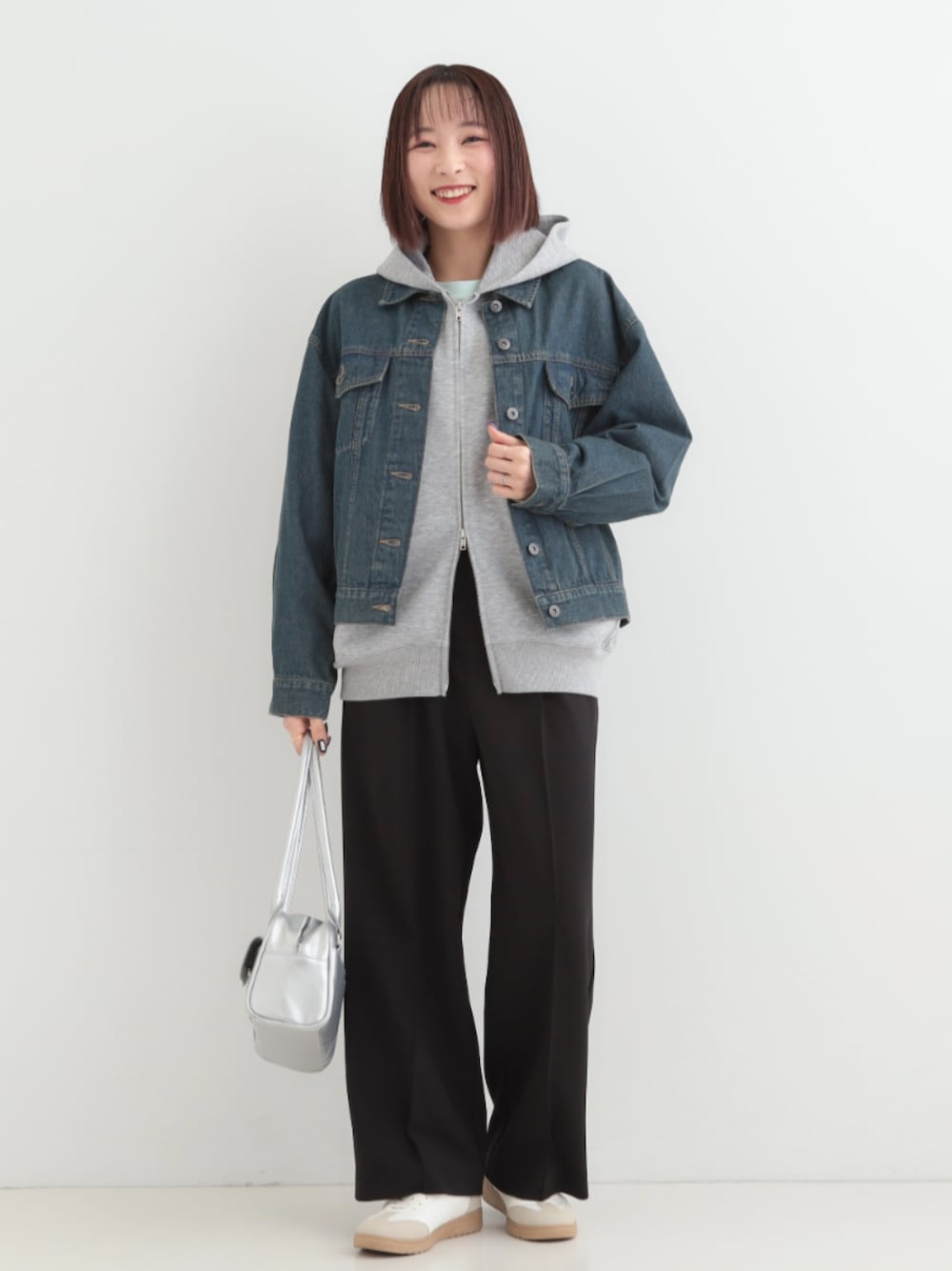 【スタイリングポイント】 デニムジャケットの中にパーカを合わせたカジュアルスタイルです。 バッグはシルバーで今年らしい雰囲気に。 【Instagram】 my account▶︎ @chi__nk Insta LIVE▶︎ ワールドオンラインストア内 LIVE SHOPPING 毎週木曜20時~出演中 是非チェックお願いします✨
