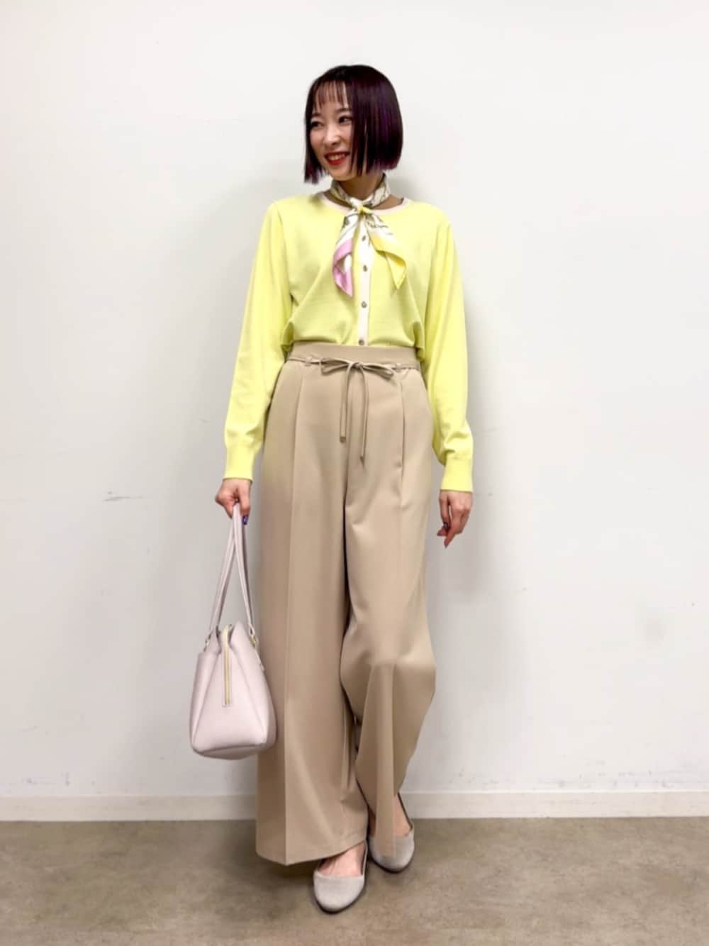 【スタイリングポイント】 春らしいイエローのカーディガンをボタンを閉じてニットとして着用。 スカーフを首に巻いて華やかさをプラスしました。 【Instagram】 my account▶︎ @chi__nk Insta LIVE▶︎ ワールドオンラインストア内 LIVE SHOPPING 毎週木曜20時~出演中 是非チェックお願いします✨