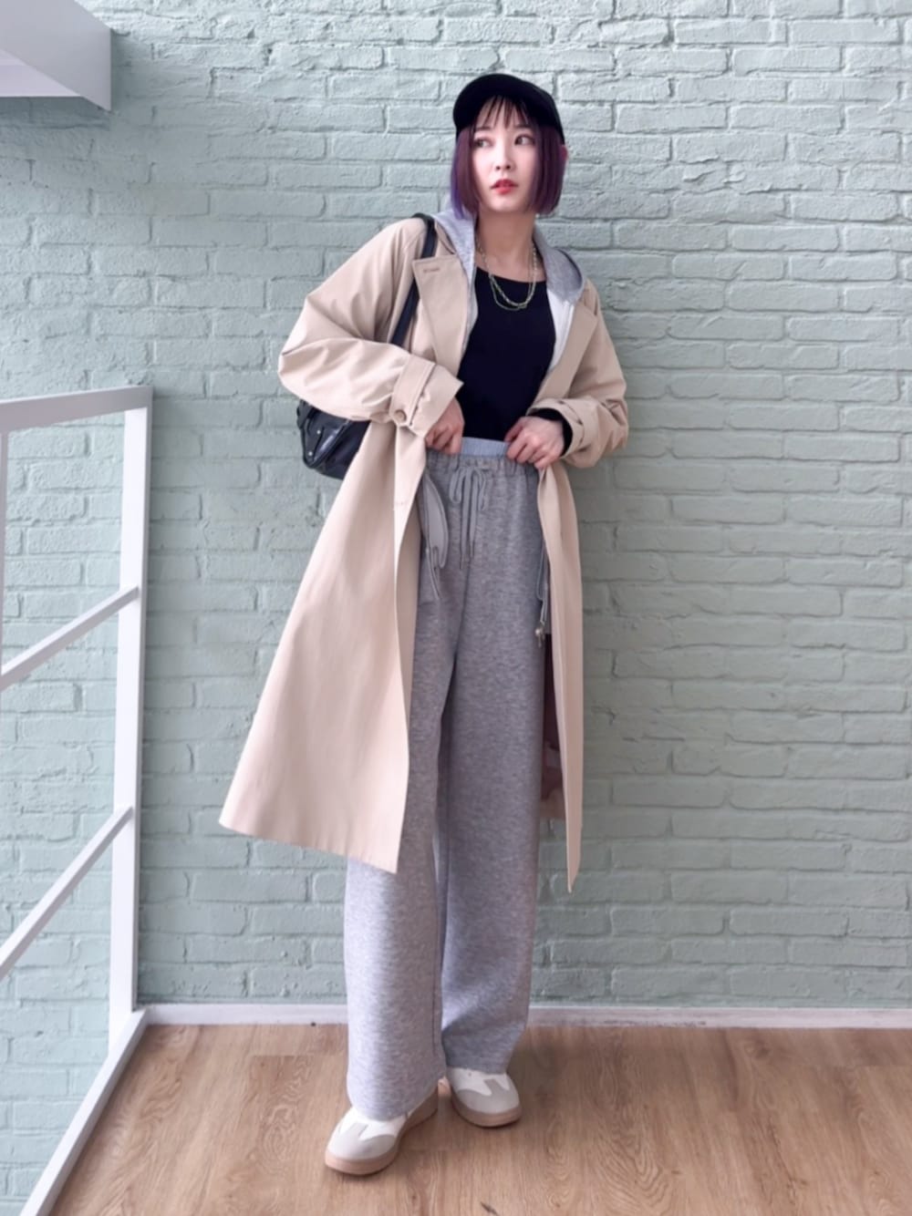 【スタイリングポイント】 上下スウェットのラフなスタイルにトレンチコートを羽織ったメリハリスタイルに。 キャップと黒のバッグでコーディネートにすっきりとした印象を。 ※ネックレスは参考商品です 【Instagram】 my account▶︎ @chi__nk Insta LIVE▶︎ ワールドオンラインストア内 LIVE SHOPPING 毎週木曜20時~出演中 是非チェックお願いします✨