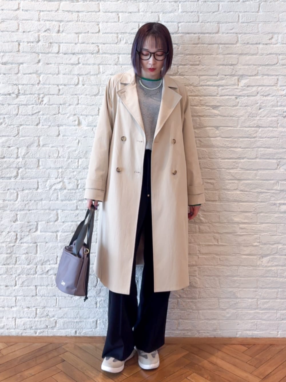 【スタイリングポイント】 グリーンの配色がアクセントのニットにトレンチコートを合わせたきれいめカジュアルスタイルです。 アクセサリーの重ね付けがさりげないポイントです。 【Instagram】 my account▶︎ @chi__nk Insta LIVE▶︎ ワールドオンラインストア内 LIVE SHOPPING 毎週木曜20時~出演中 是非チェックお願いします✨