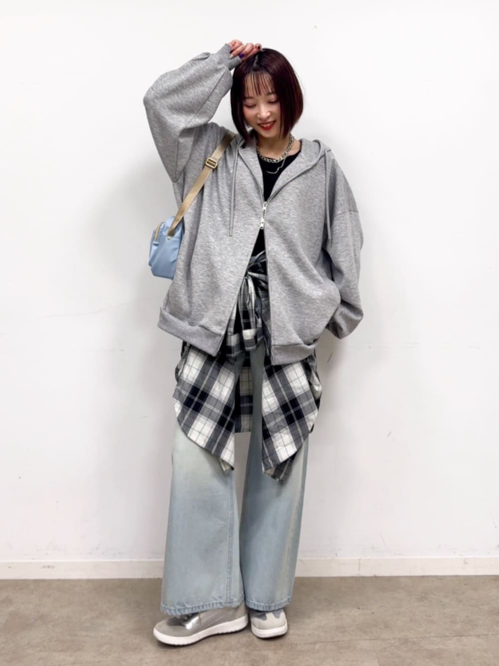【スタイリングポイント】 パーカーのファスナーは上下開けて抜け感を作りました。 チェックシャツを腰巻きにしてオーバーサイズのパーカーもメリハリある着こなしに。 【Instagram】 my account▶︎ @chi__nk Insta LIVE▶︎ ワールドオンラインストア内 LIVE SHOPPING 毎週木曜20時~出演中 是非チェックお願いします✨