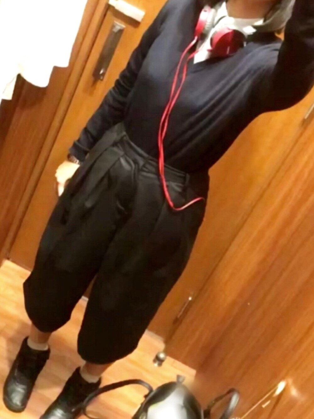 いつもかっちりスーツだけど 休日出勤だから #オフィスカジュアル 通退勤は差し色ヘッドフォンで音楽を。