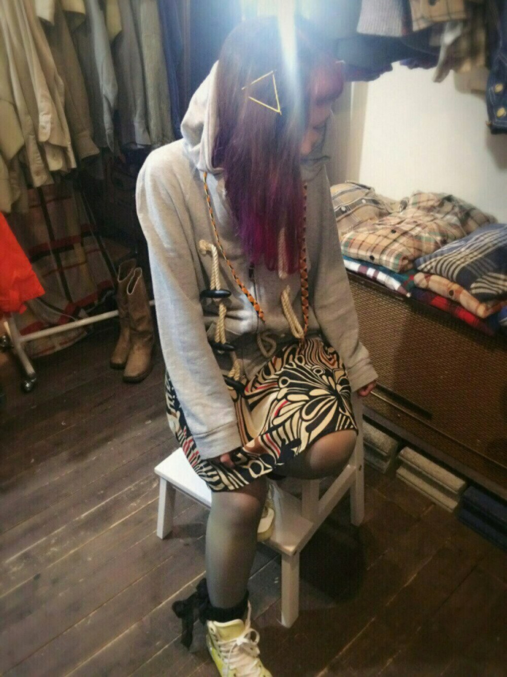 今日の服 アジアン雑貨のお店で買ったリバーシブルワンピースとメルシーのパーカー つけレースの次に使えるビッグリボンのメッシュのレッグウォーマー これも何処で買ったか全く覚えてません 普通のイエローのヘアピンを3本△の形になるようにすると、ただのヘアピンがヘアアクセサリーのようになる☺︎ 美容院に行って1ヶ月ぐらいになるのでそろそろカラー飽きてきました なので飽きた時はマニパニ 今回は髪の毛を前髪を入れて10個のブロックに分けて交互に赤と紫のマニパニで染めてストライプにしました。 ただ、赤なはずがピンクになってしまいパープルとの色の違いが分かりにくい… 次はまた別のカラーでストライプにしようと思います タイツオレンジでもいいな フォローセーブいいねありがとうございます☺︎ 今日のおやつはこの間買った抹茶チーズスティックアイスともちもちパンプキンドーナツを食べました 期間限定っぽい美味しかったお菓子はその時にたくさん食べておかないと後悔してしまいます