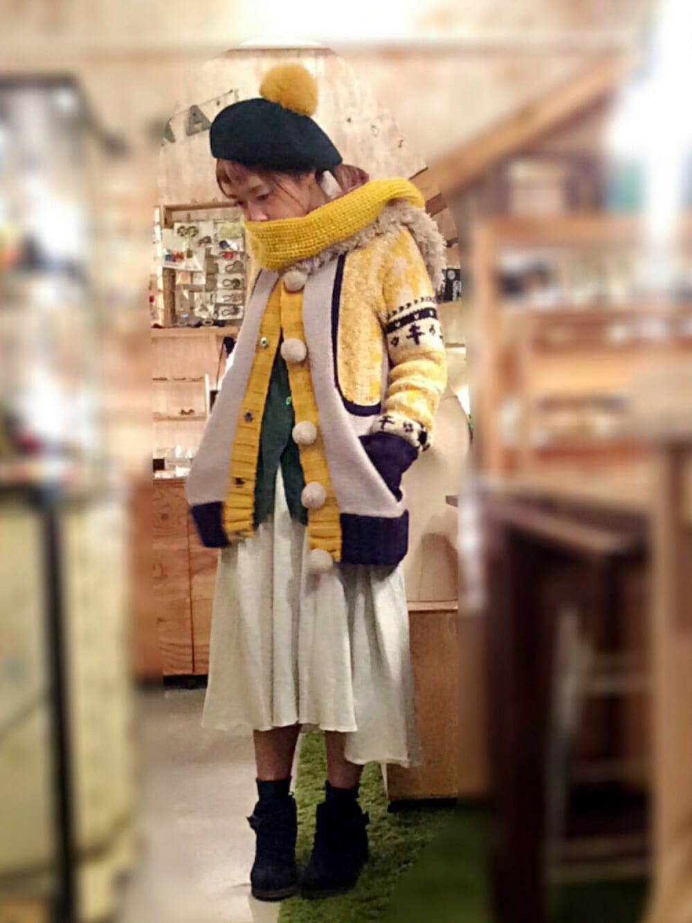 今日の服 ネネットのアウターにスヌード ベレー帽とポンポン マスタード×モスグリーン フォローセーブいいねありがとうございます☺︎ 去年行けなかったトラウマに今年はネットで購入して行けました 来年もやらないかなぁ 去年途中退場の人が多かったから人気ないと思ってたら当日券完売とかビックリした