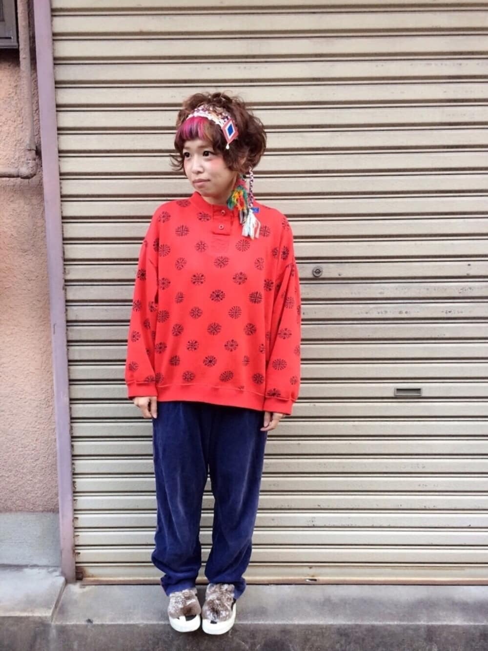 今日の服 古着の赤のトップスに 赤ラインの入ったネイビーの古着パンツ 焼肉なのでニットはやめました🍖 CONVERSEのスリッポン+付けファー 頭はレースのヘアバンドの上からホォアナの万能ひも巻いてます ピンクの方ばかり使っていたので紫のをクローゼットから引っ張りだして最近使ってます baharanaのピンズ 本革で出来てます ハンドメイドのタッセルピアス フォローセーブいいねありがとうございます☺︎ お腹ペコペコ 腕まくりして いっぱい食べるぞー٩(ˊᗜˋ*)و♡ いただきます😋