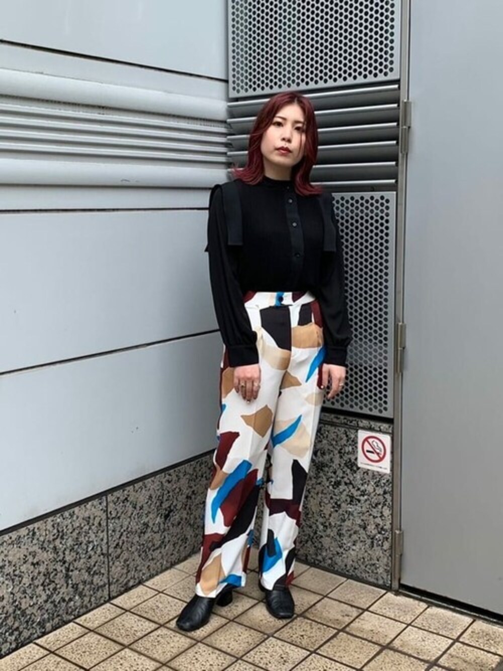 柔らかく揺れるプリーツのブラウスは着心地も良く、ボトムスも選びません。パンツはサラサラの素材でオールシーズン使用可能です◎普段柄物を着ない方もボトムスでしたら取り入れやすいので今年の秋冬から挑戦してみてはいかがでしょうか!