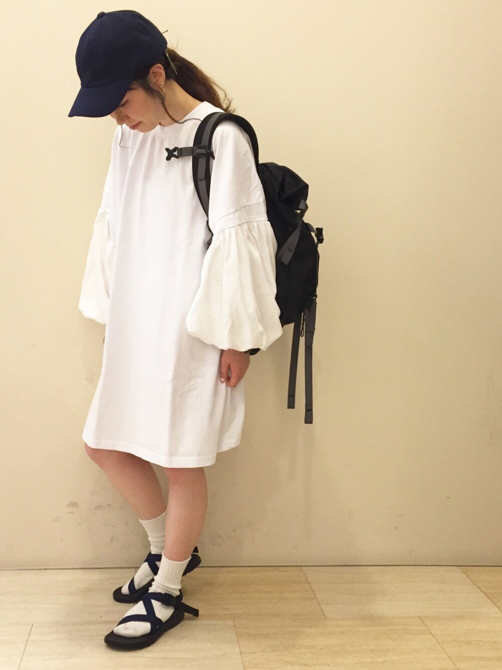 前のジャンピンの袖バルーンワンピバージョン👗けっこうゆったりで楽ちん♩ お袖がかわいーです👏