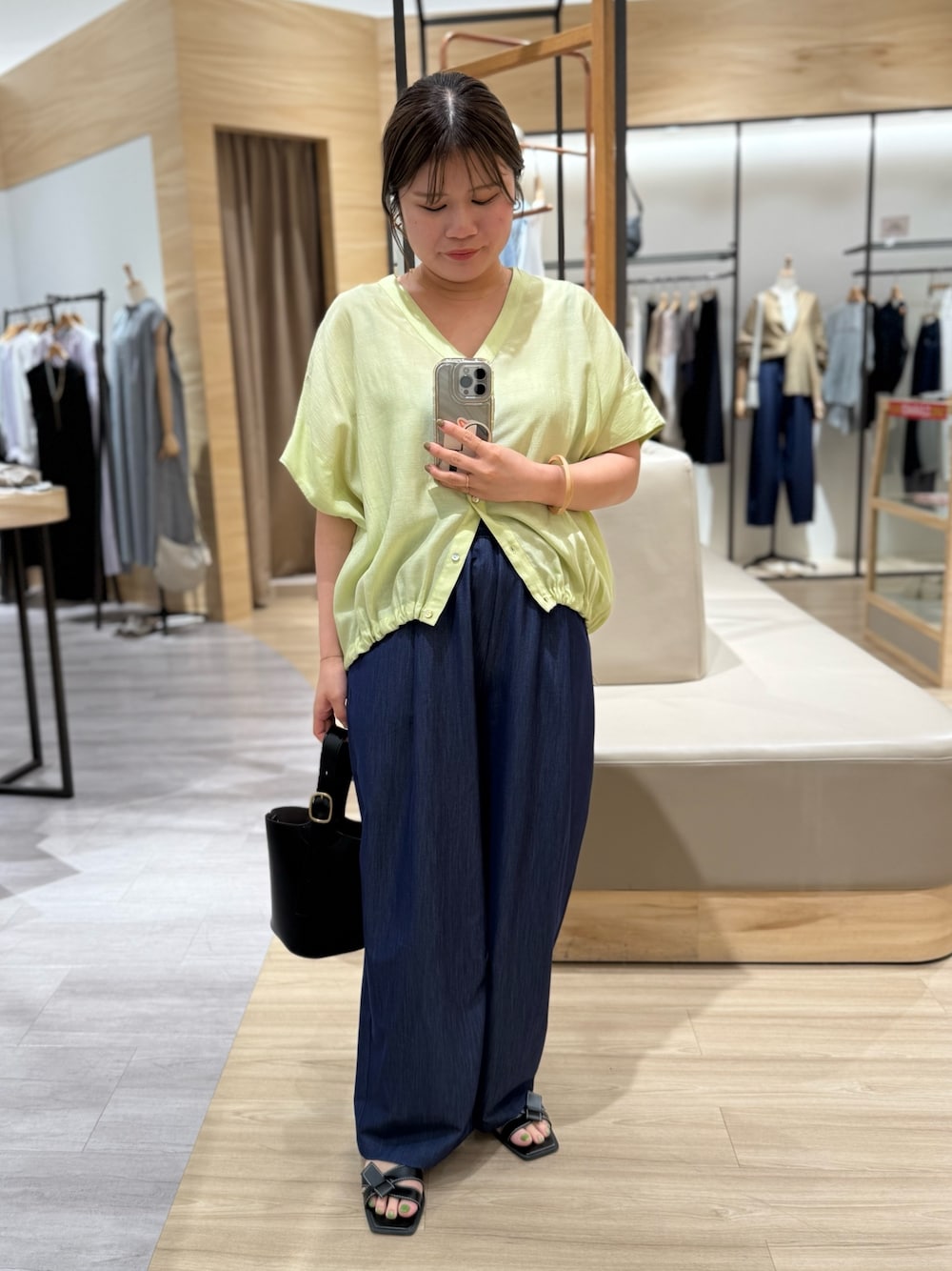 chihiro(Jena espace merveilleux)のシャツ/ブラウス「【スッキリ半袖Ⅴシャツ】裾ドロストダブルVシャツ」を使ったコーディネート