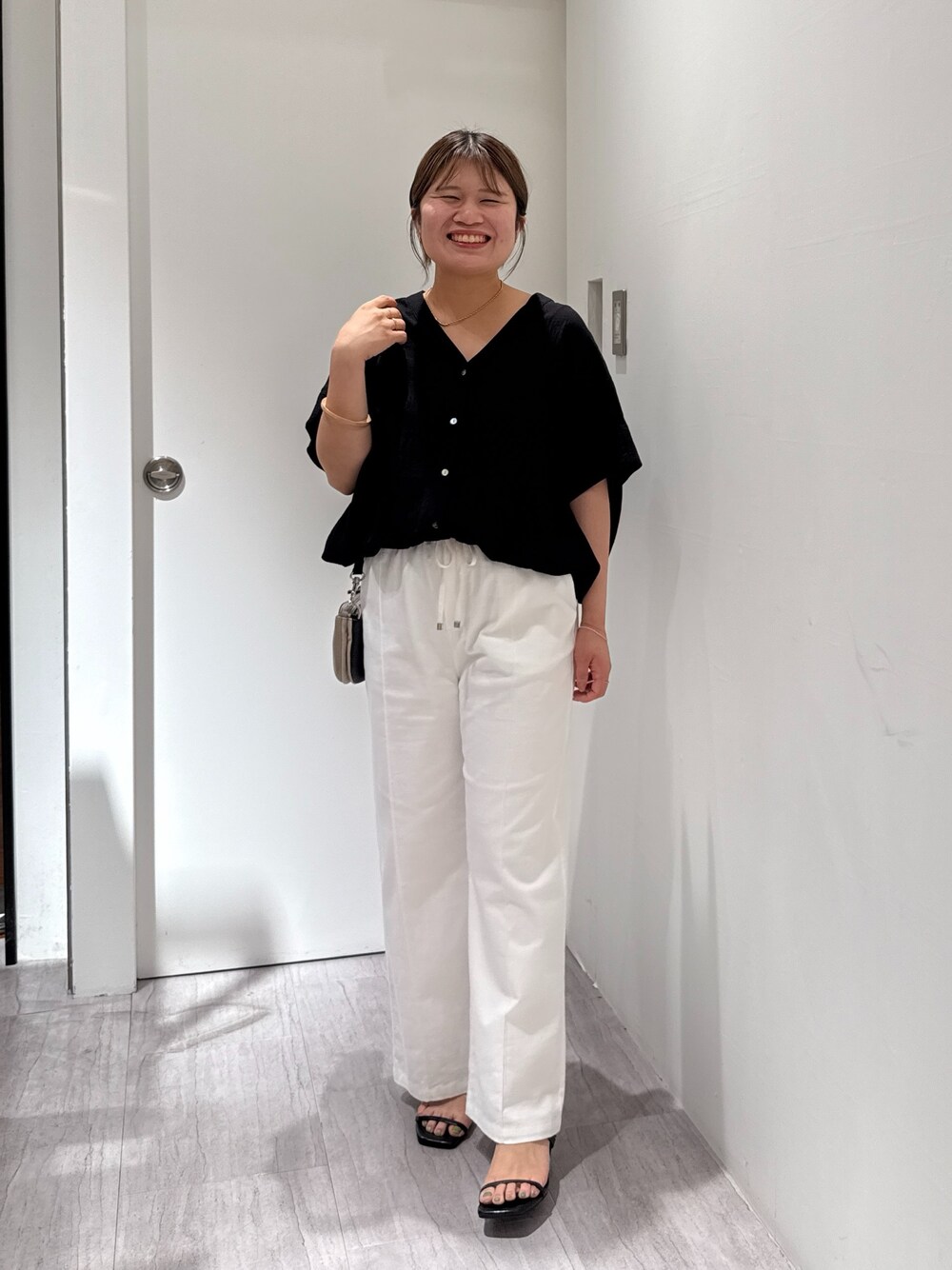 chihiro(Jena espace merveilleux)のシャツ/ブラウス「【スッキリ半袖Ⅴシャツ】裾ドロストダブルVシャツ」を使ったコーディネート