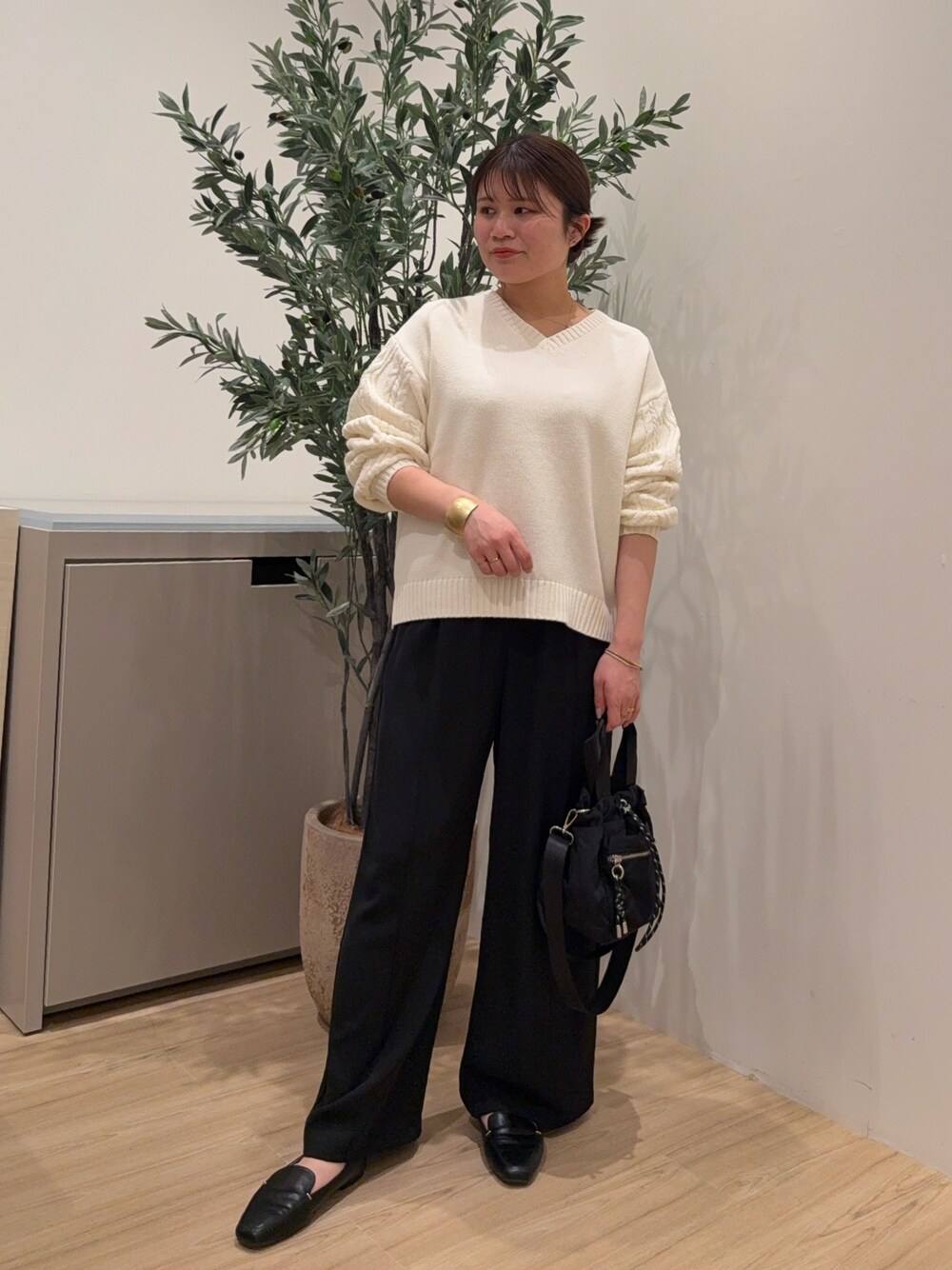 chihiro(Jena espace merveilleux)のニット/セーター「【スッキリ小顔見え◎】袖ケーブルVニット」を使ったコーディネート
