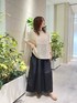 メッシュニットから透けて見えるロゴtが◎! メッシュニットは軽やかな素材感で涼しく着用できそうです。 スカートは後ろゴムで妊娠中ですが着用できました。