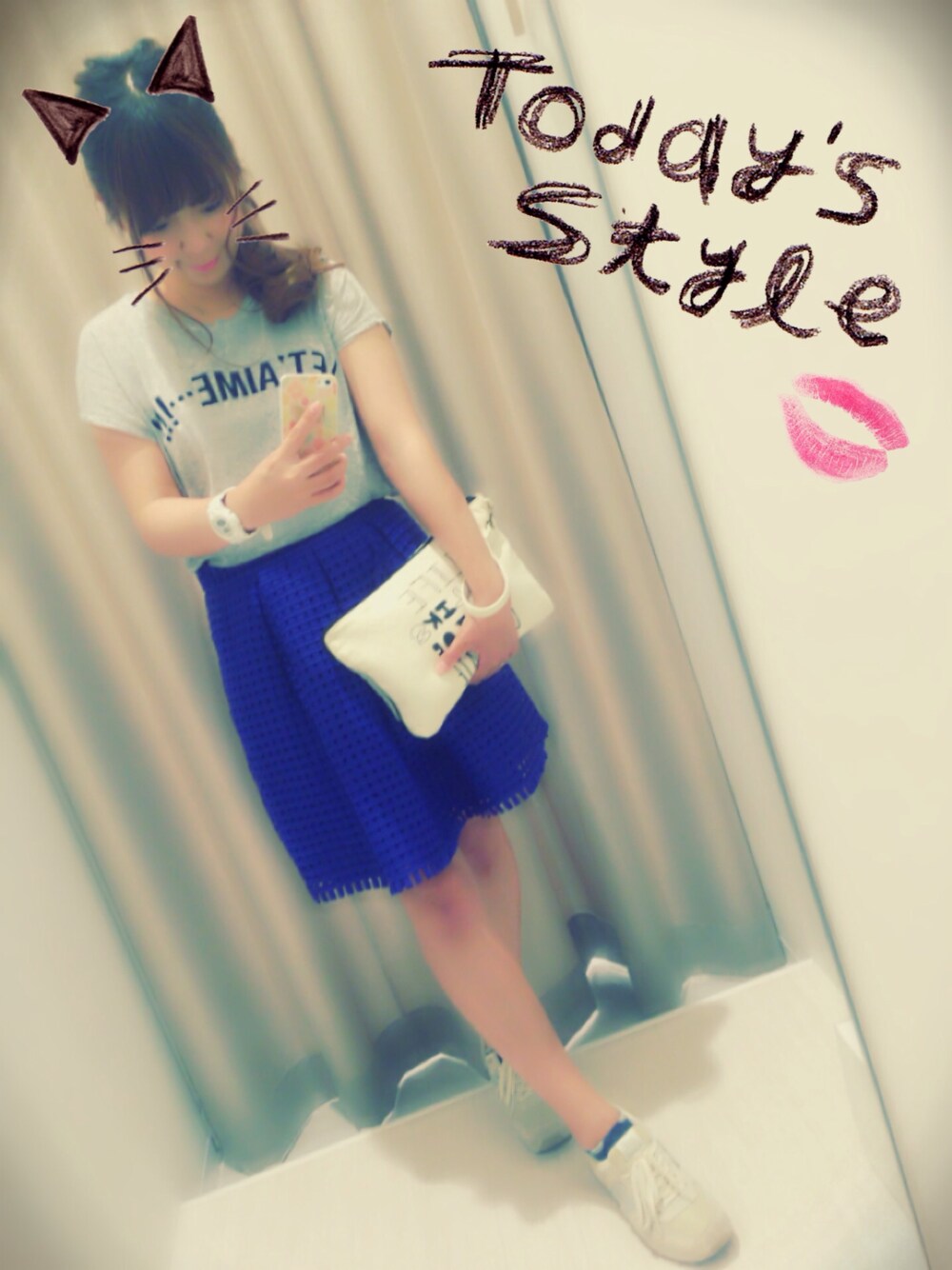 スカート:Another Edition スニーカー:ニューバランス クラッチバック:雑貨屋さん Tシャツ:ノーブランド 初コーディネート♪(´ε` ) アナザーエディション大好き♡ メッシュのブルーのスカートがお気に入り♡