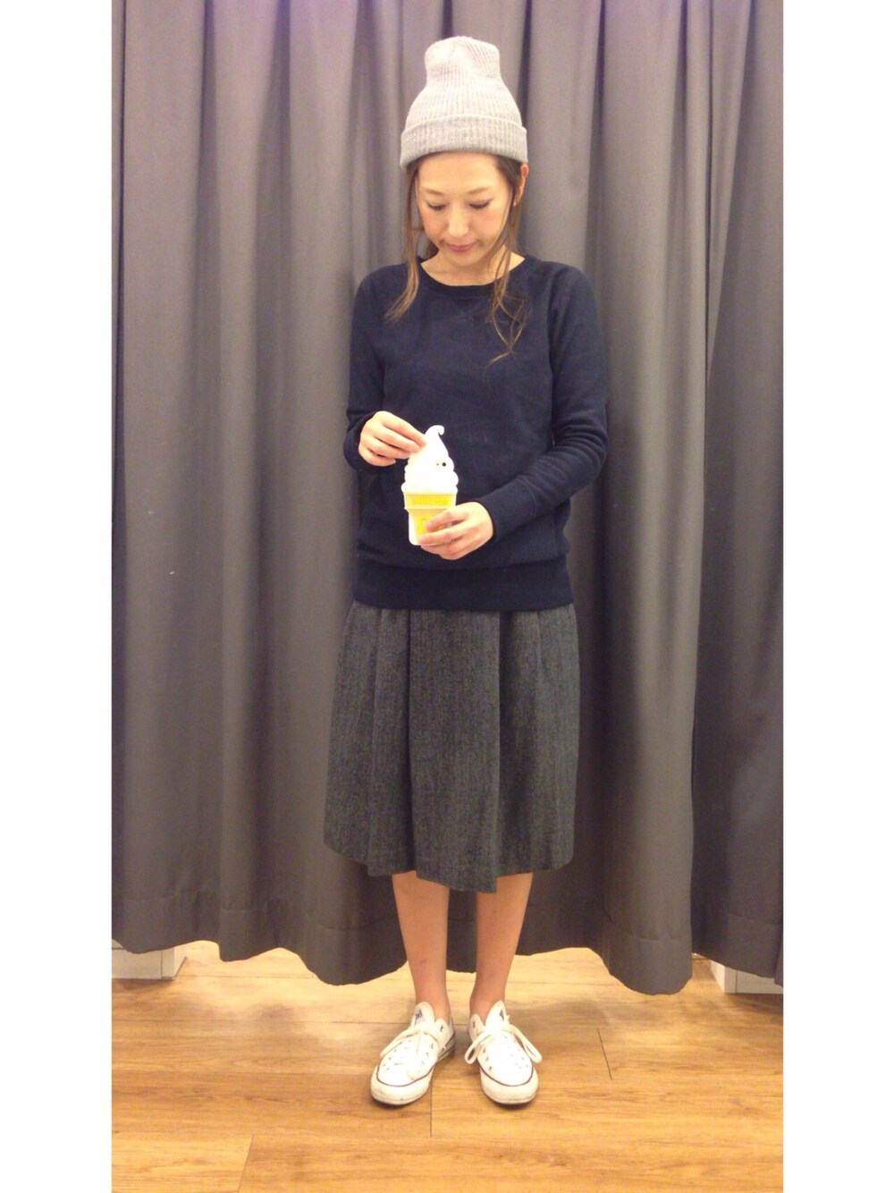 UNIQLOの試着室で。 このスカートに一目惚れをして即購入。 tops:GAP