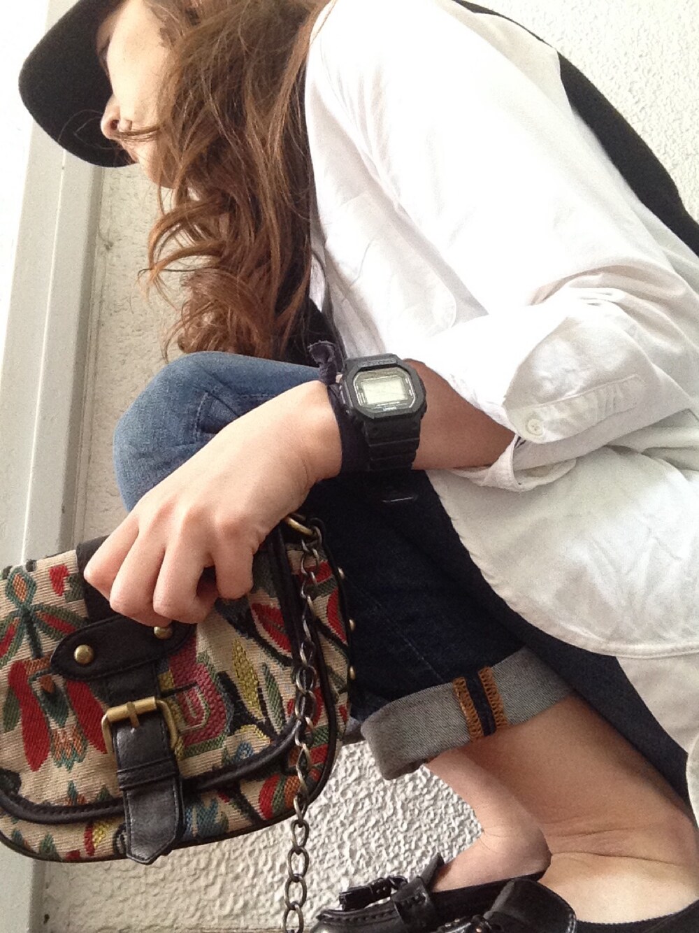 下からセルフで撮ってみたけど、 全然これぢゃあ分かりませんね… 写真のセンスなし。 そしてどーってことない服。 今日もキャップな気分でした。 シャツ…無印 デニム…無印 バック…Forever21 靴…ZARA