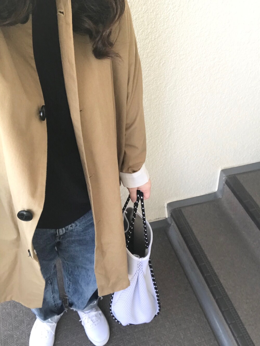 昨日も履いてたスニーカーで靴擦れ なんでだー ウェットスーツ素材のプチプラネオトートバッグ 明るくなって良い