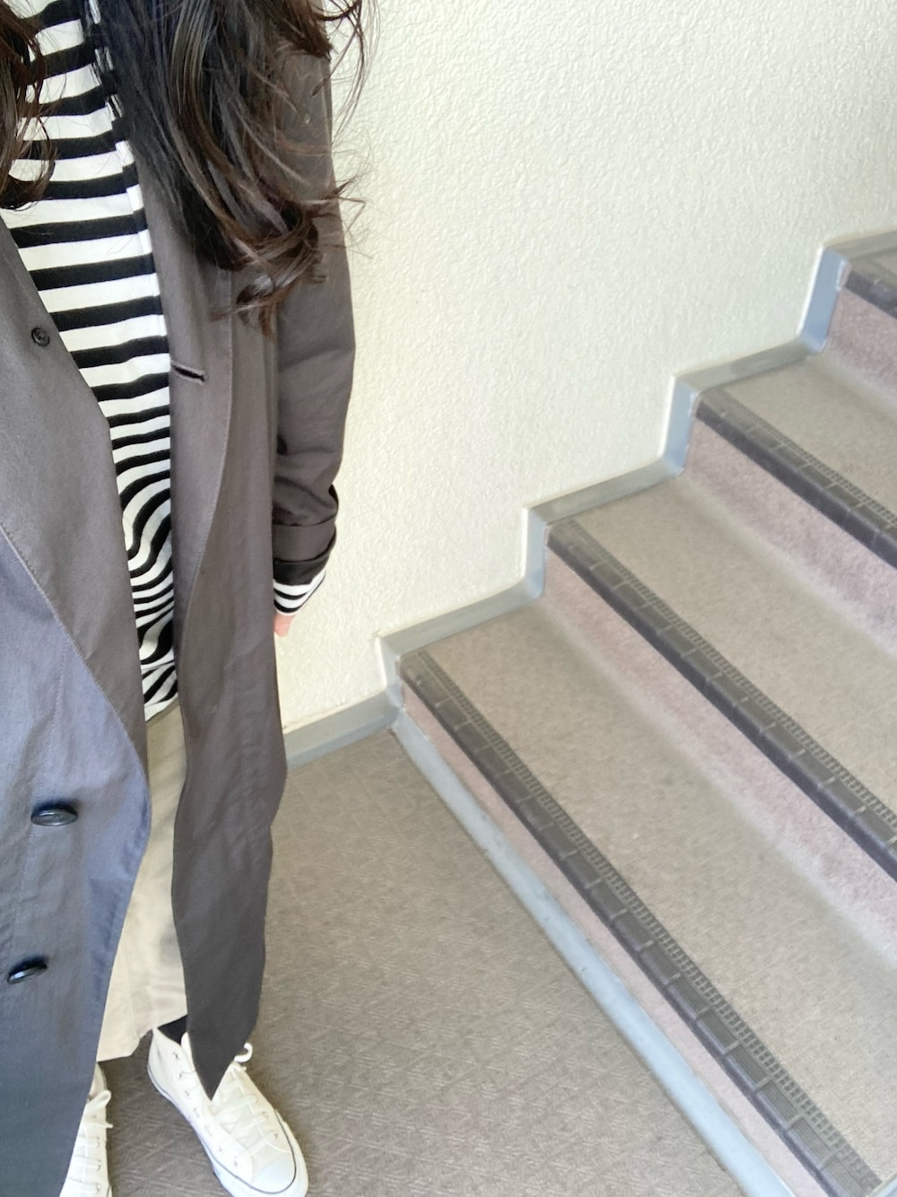 月曜日 ホントにいつのまにか 厚手のコートを着なくなった 春ですね ボーダーカットソーとスプリングコート