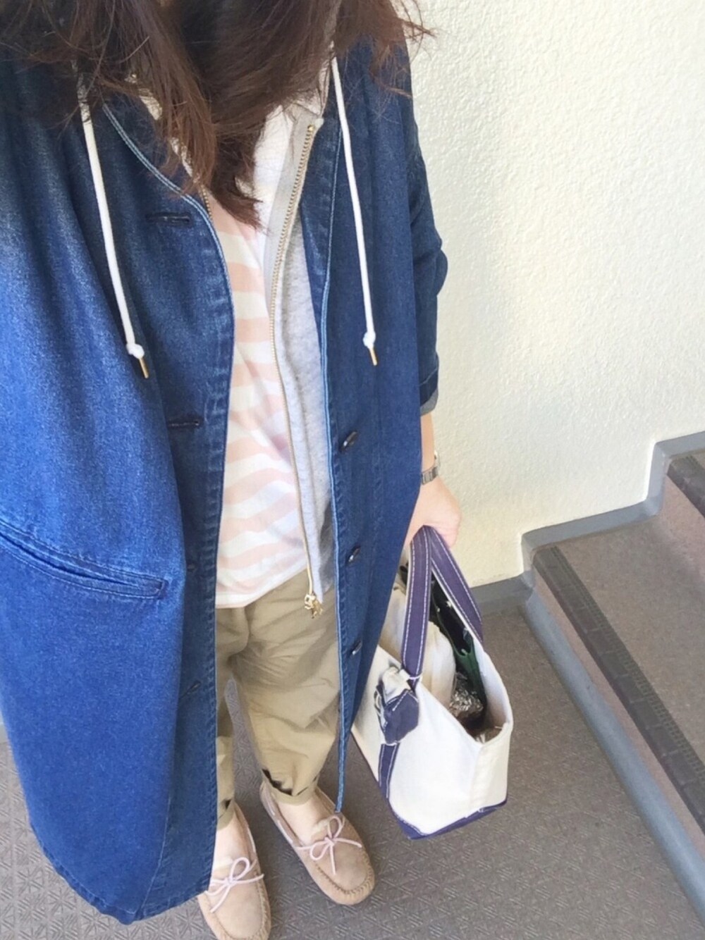 日中は4月上旬の気温らしいので 足の甲を出してみたけど 朝はまだちと寒かった 早速GUのデニムチェスターコートで出勤 ゆったり着れるサイズ感が◎ まだまだ合わせ方模索中