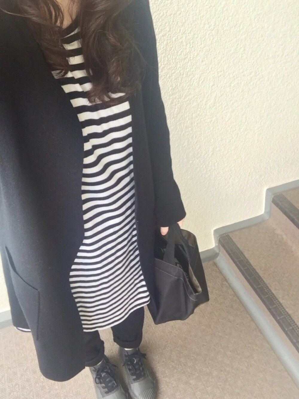 月曜日の祝日が珍しく休みなので 久しぶりの3連休初日 モノトーンコーデ 春らしさゼロ またボーダー