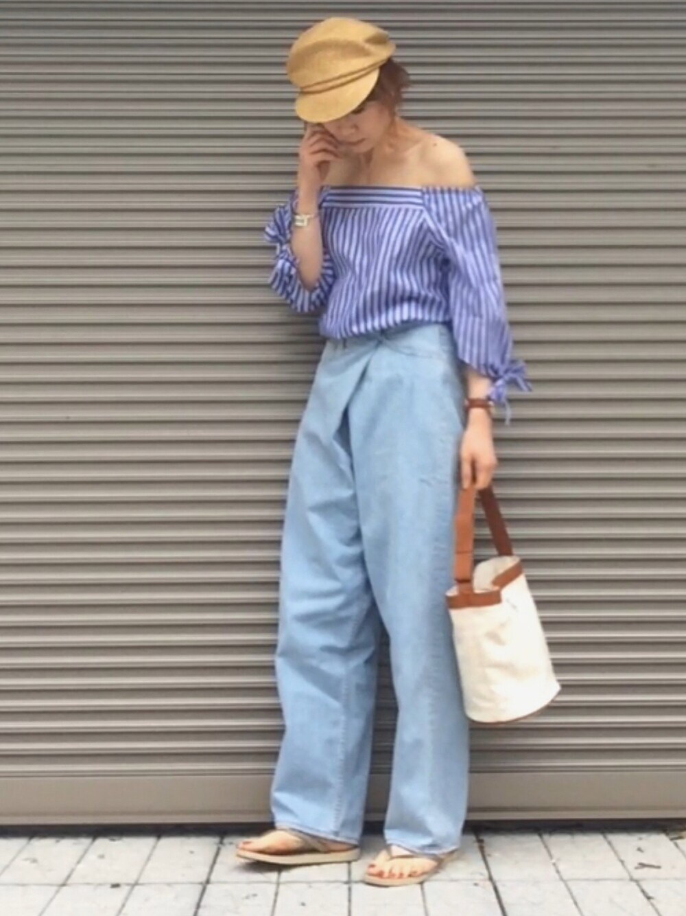 お気に入りのデニムに、、 ストライプのオフショル♡ 爽やかブルー🙌 Instagram➡️chikaa25
