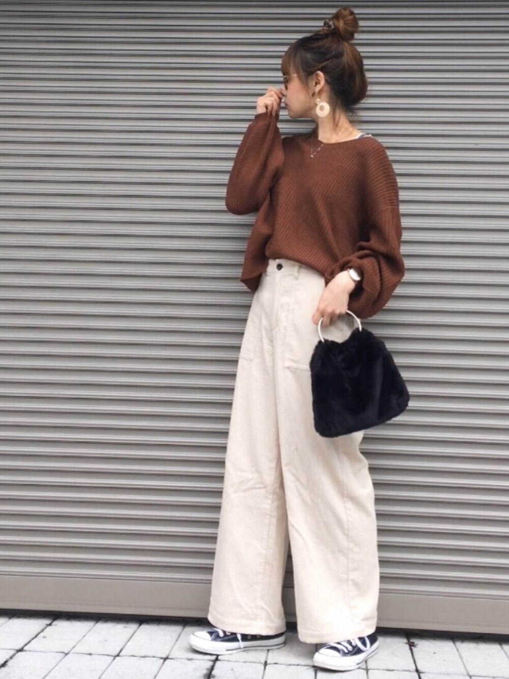 ブラウンニットに コーデュロイのパンツ♡ ニット プチプラなのに可愛い♡ お袖たゆーん系大好きです🙌💕 Instagram➡️chikaa25