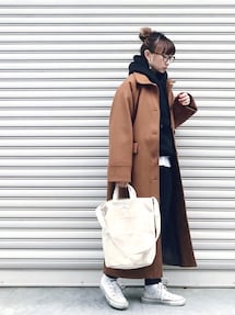 chikaのチェスターコート「オーバーサイズチェスターコート」を使ったコーディネート