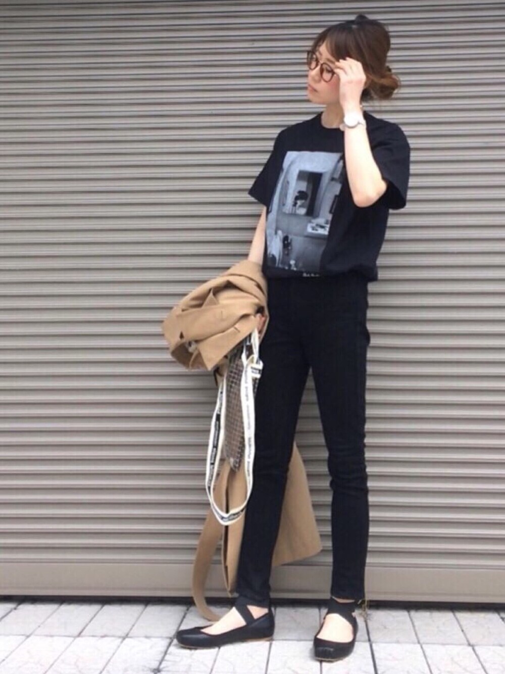 黒にトレンチ羽織り☺︎♥ インスタ chikaa25