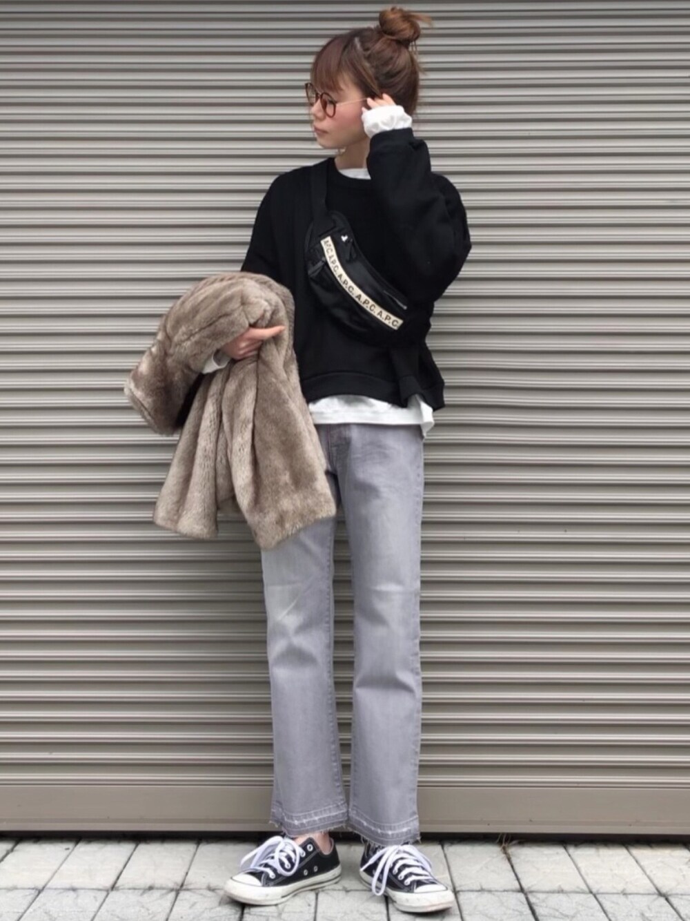 chikaのスニーカー「converse コンバース ALL STAR 100 COLORS OX オールスター 100 カラーズ オックス 32861791 BLACK」を使ったコーディネート