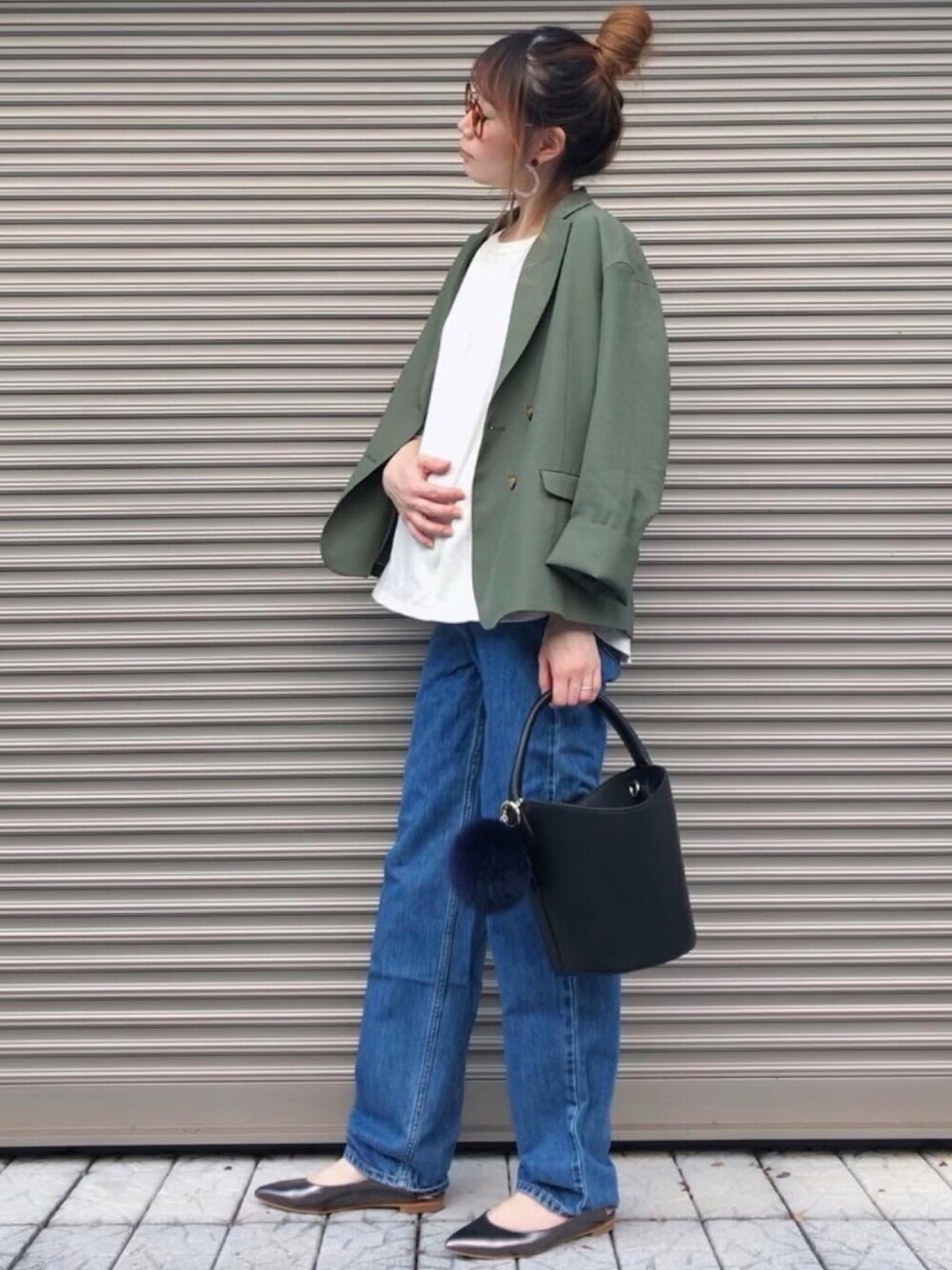 chikaのテーラードジャケット「シワになりにくいイージーケアダブルジャケット(オーバーサイズルーズシルエット)」を使ったコーディネート