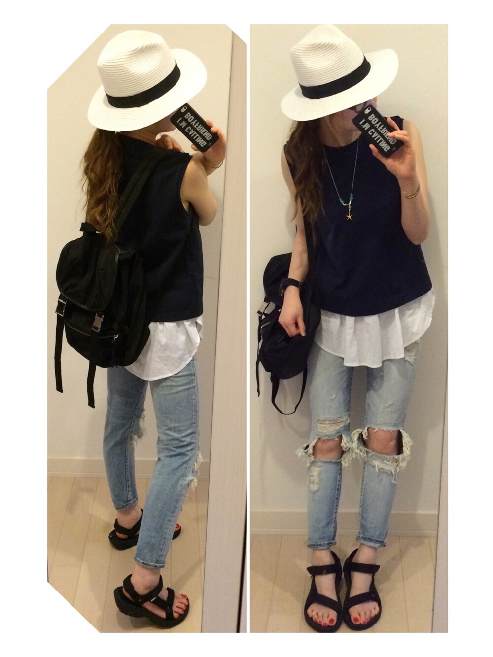 最近緩いカッコばかりで 体型たるみまくり。。 デニム履いて危機感w パツ子分かってます、、 今年こそは体重戻したいー!! まだまだ夏バテとは無縁の食欲😂