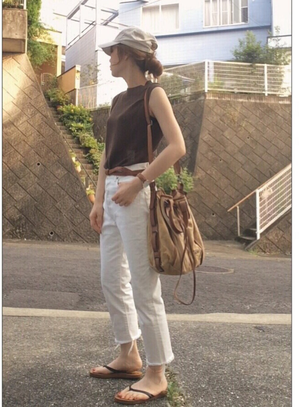ホワイト✕ブラウン DIESELのバックはお気に入りちゃんのひとつ💓 そして ストレートの9分丈パンツって 体型カバーできないことを知る😂 しかも白、、 去年の夏のあたしを知ってる人は 急激な体重増加がきっとバレバレなCode😂 浮腫もとれません💦