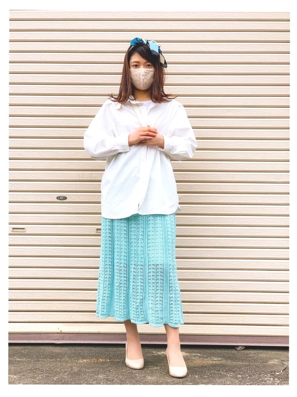 GRLのシャツ こないだニットあわせたけど、これだけで着てもかわいい🥰 RODEO CROWNSのスカート この色のニットスカートは今しか着れないってことで今春は着倒す