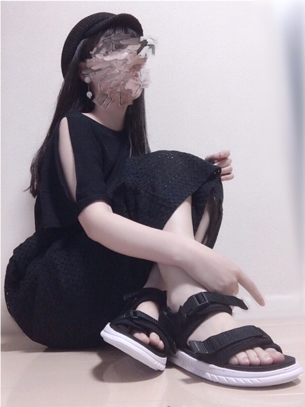 海へ行った日のコーディネートです🐚 お気に入りのスポサンに合わせてこの日はブラックで揃えました😘 真っ黒だと重くなるので、脚や腕の露出を増やしてバランスを取りました✨ このカットソーは二の腕の太さが気にならない出方なので、出したいけど…と迷ってる方にオススメです❤️❤️