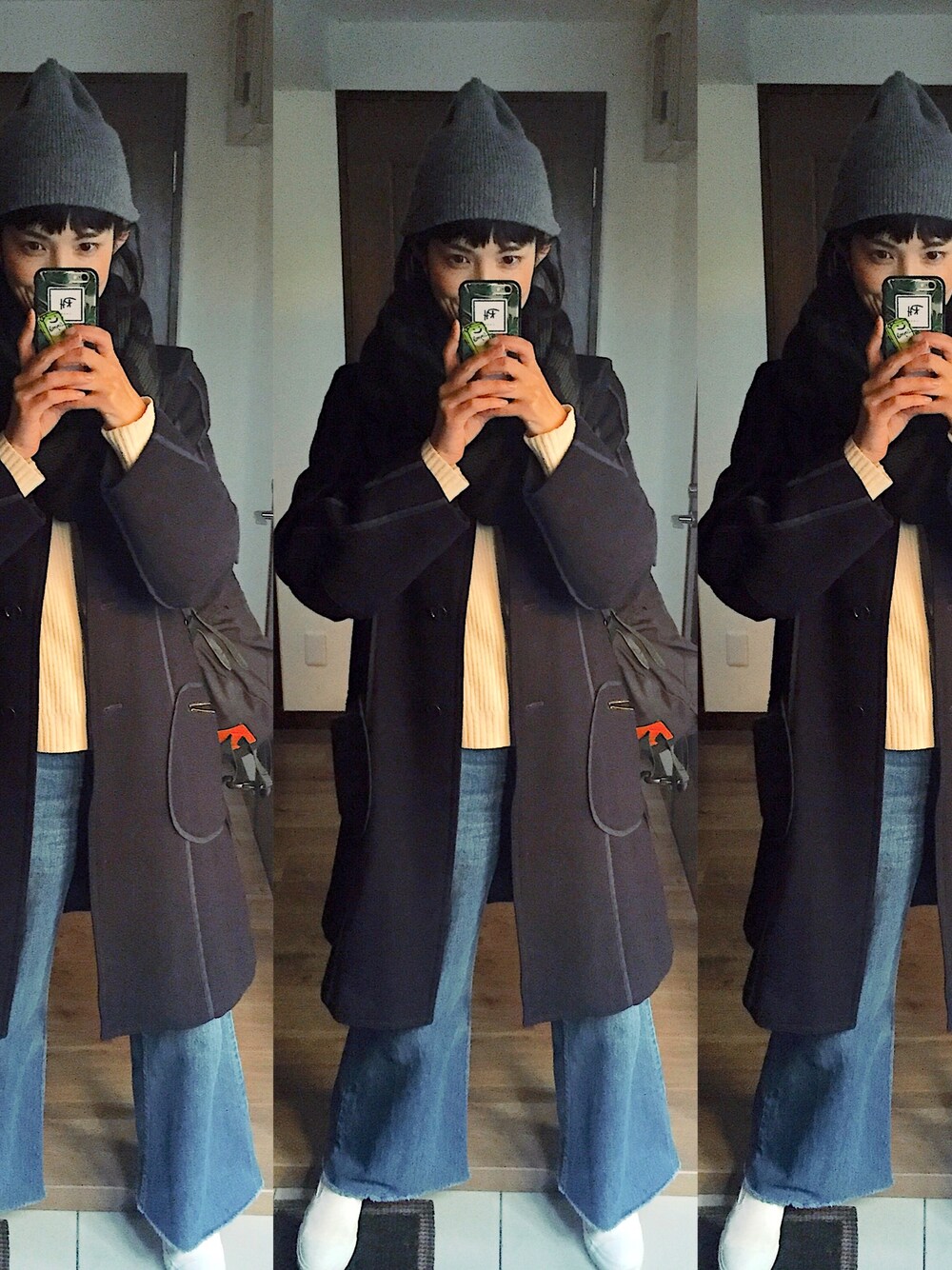 WEARはじめましたっ!まだ使いこなせていませんがよろしくお願いします✴︎ 今日はうどんやさんでおしごとだったよ!動きやすい格好です。スヌードはいただきもののsampleです。あったかい♡基本いつもスニーカーです。