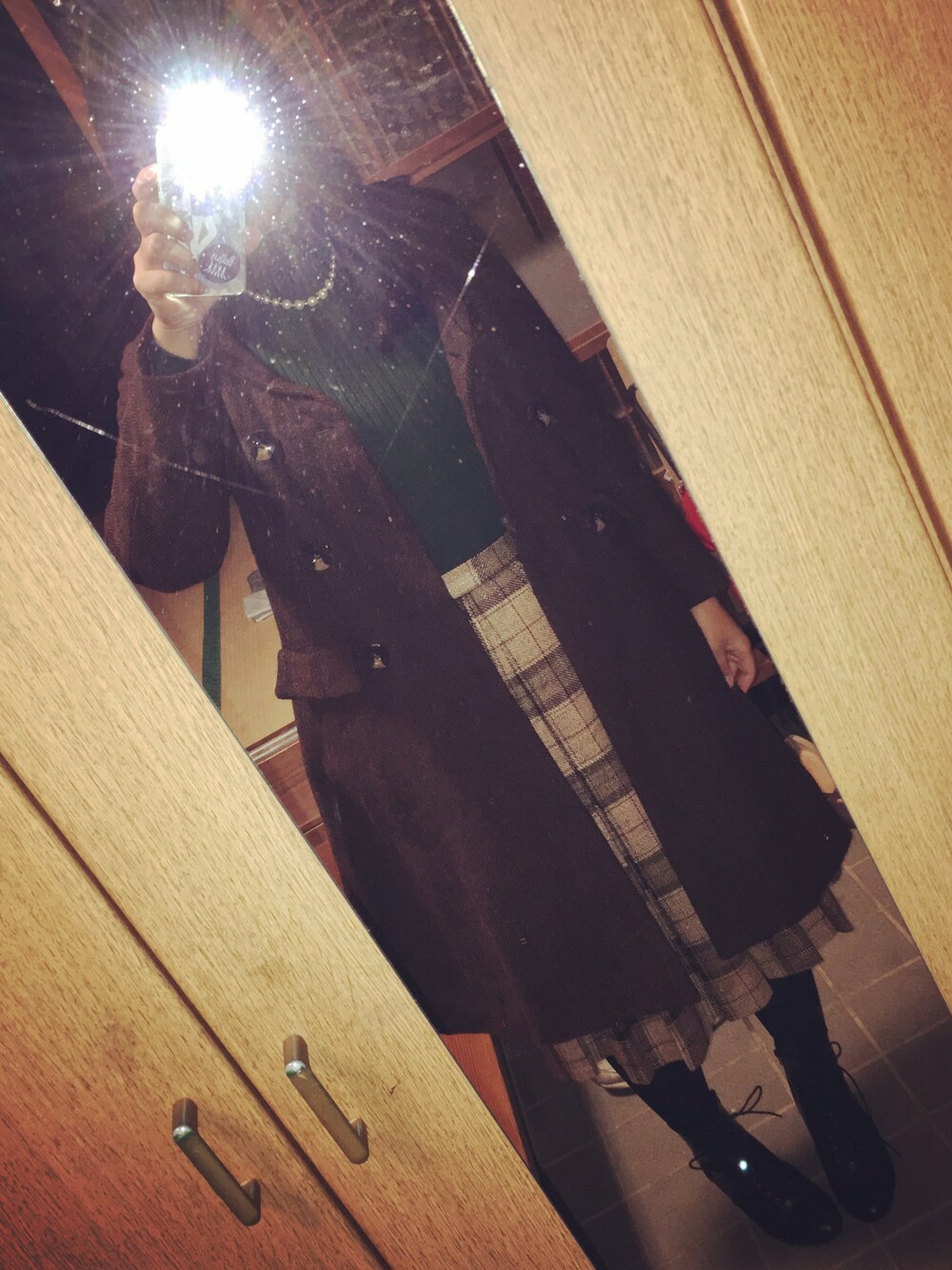 母のおさがりのスカートでコーデ。 30年前に買ったらしい。