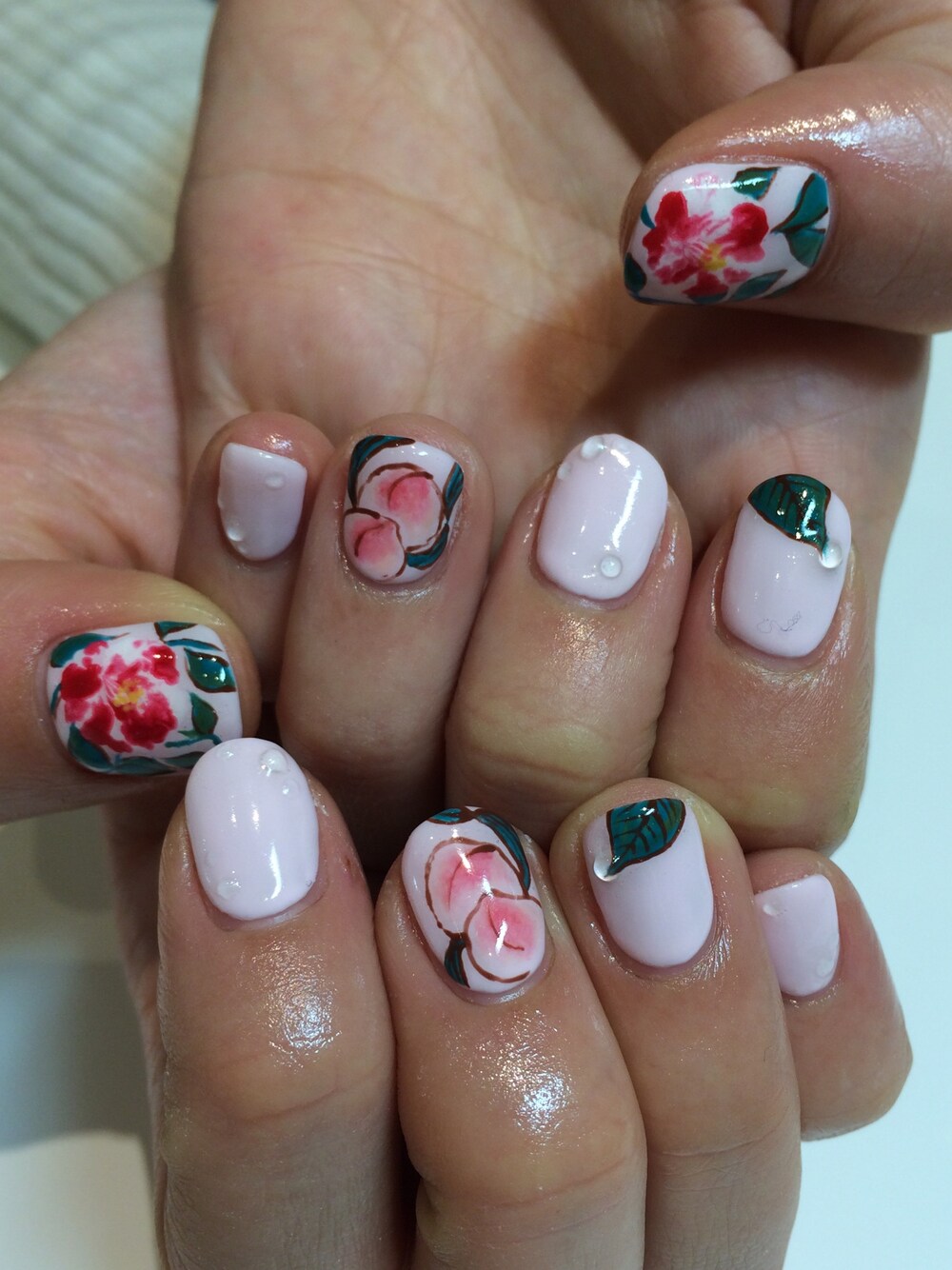 中国様式の日本画風で桃と葉っぱを描いてもらいました。 みずみずしくしずくものせて💦