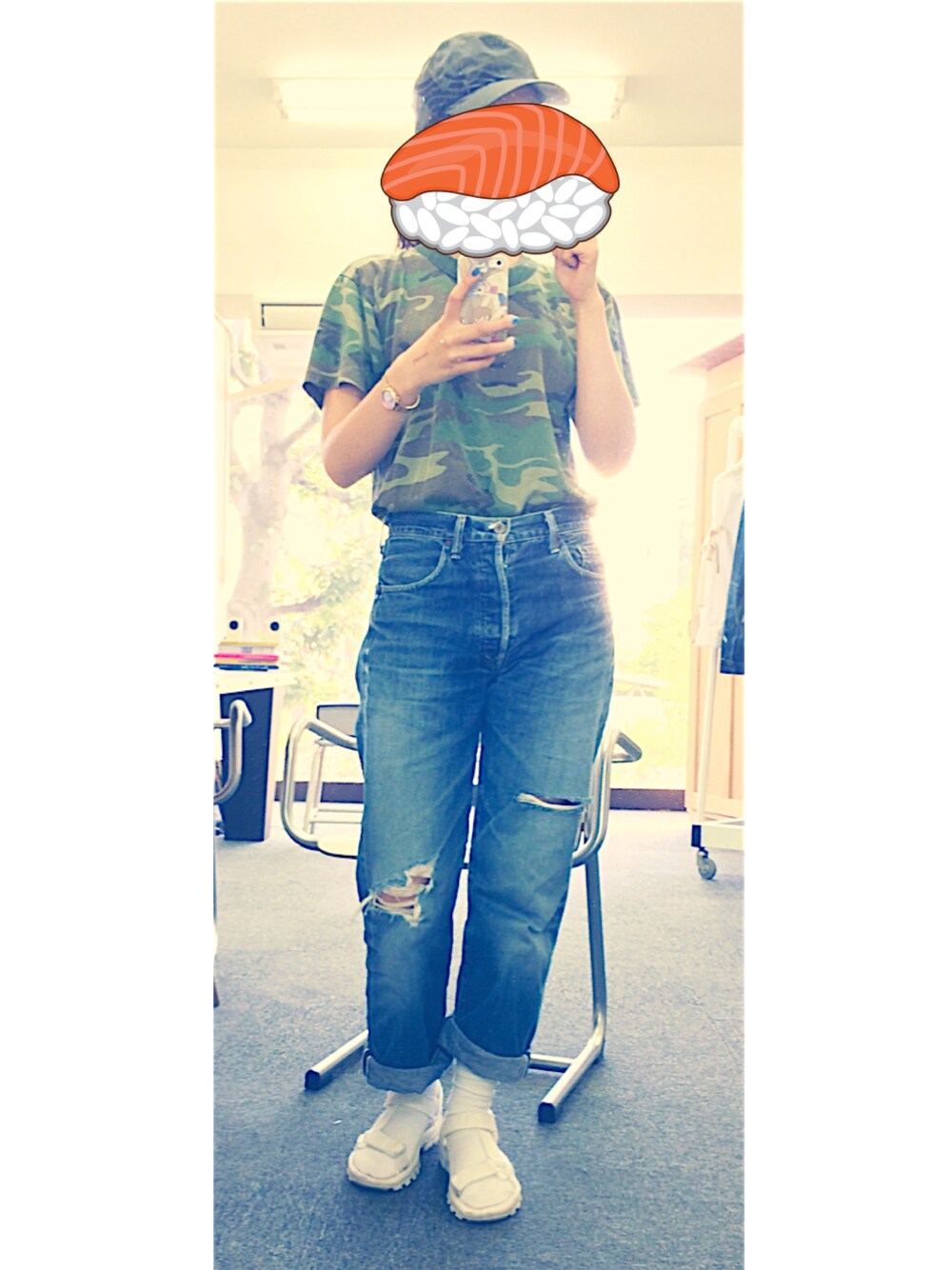 お昼休憩の歯磨き中に撮ったら顔まじキモくなったw 今日はこの前購入したLevi's 503-B 501復刻のクラッシュデニム履いてます✌︎ あとは寝坊したから適当に。。